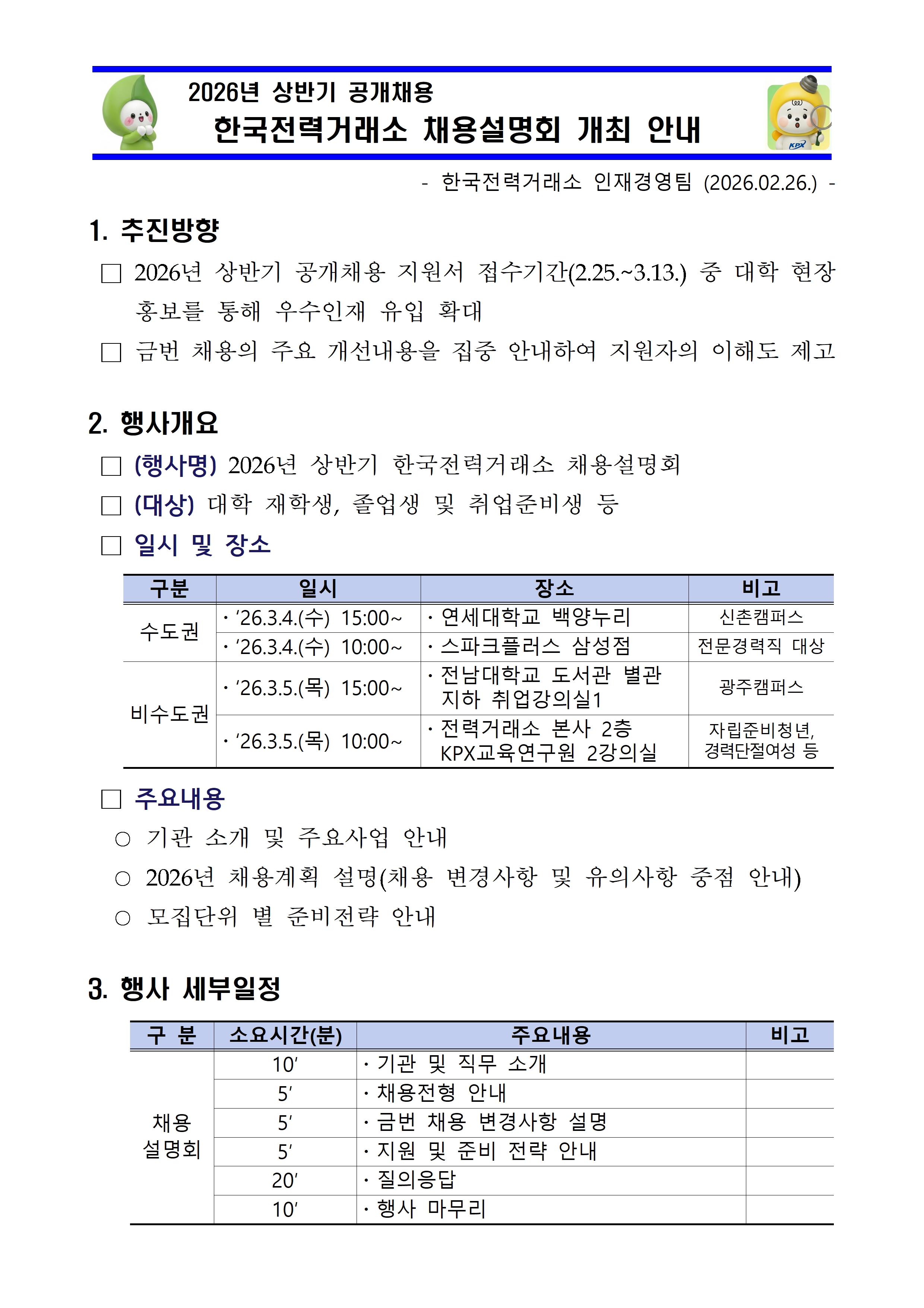 [한국전력거래소] 2026년 상반기 기상빅데이터 분야 전문경력직 공개 채용 안내
