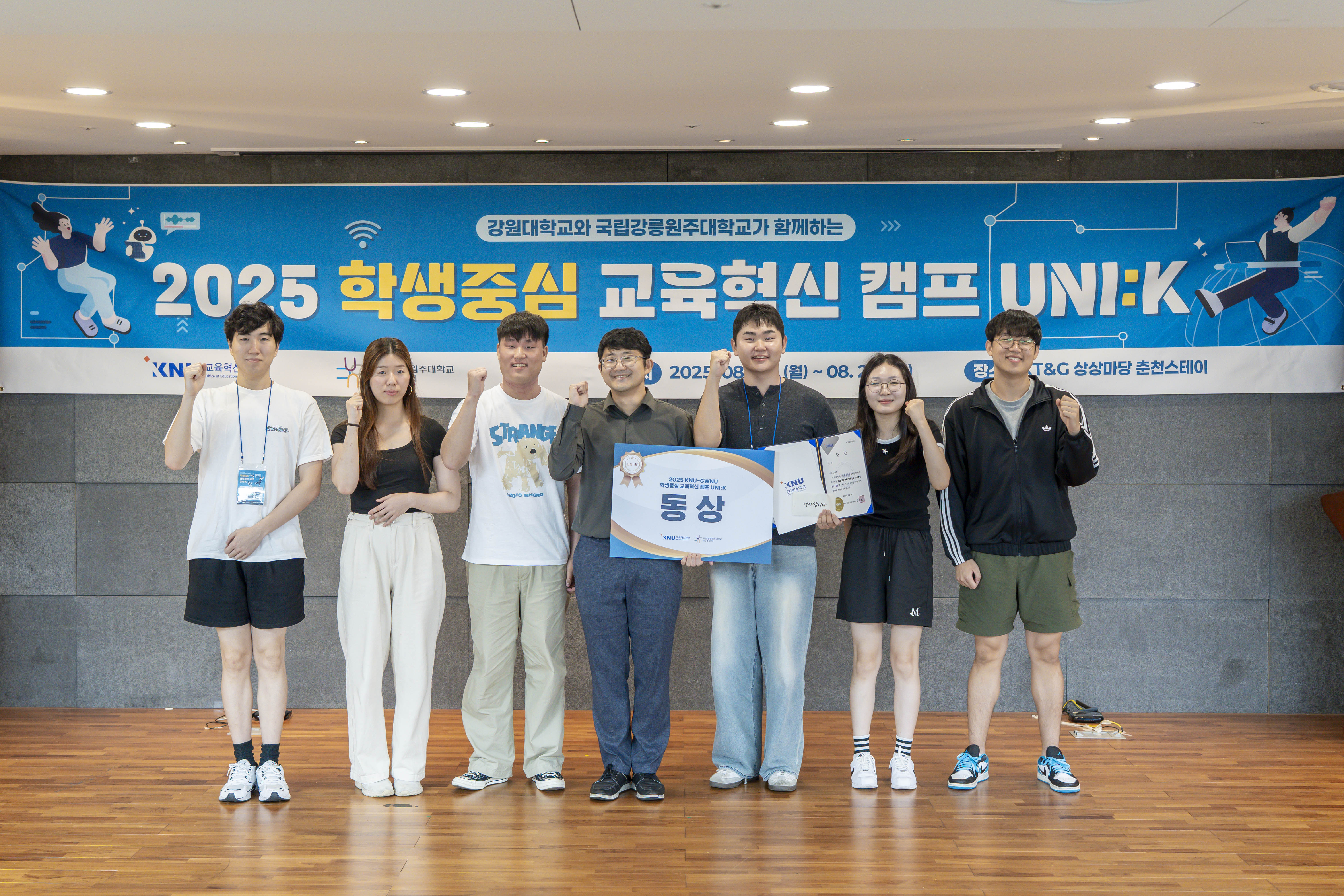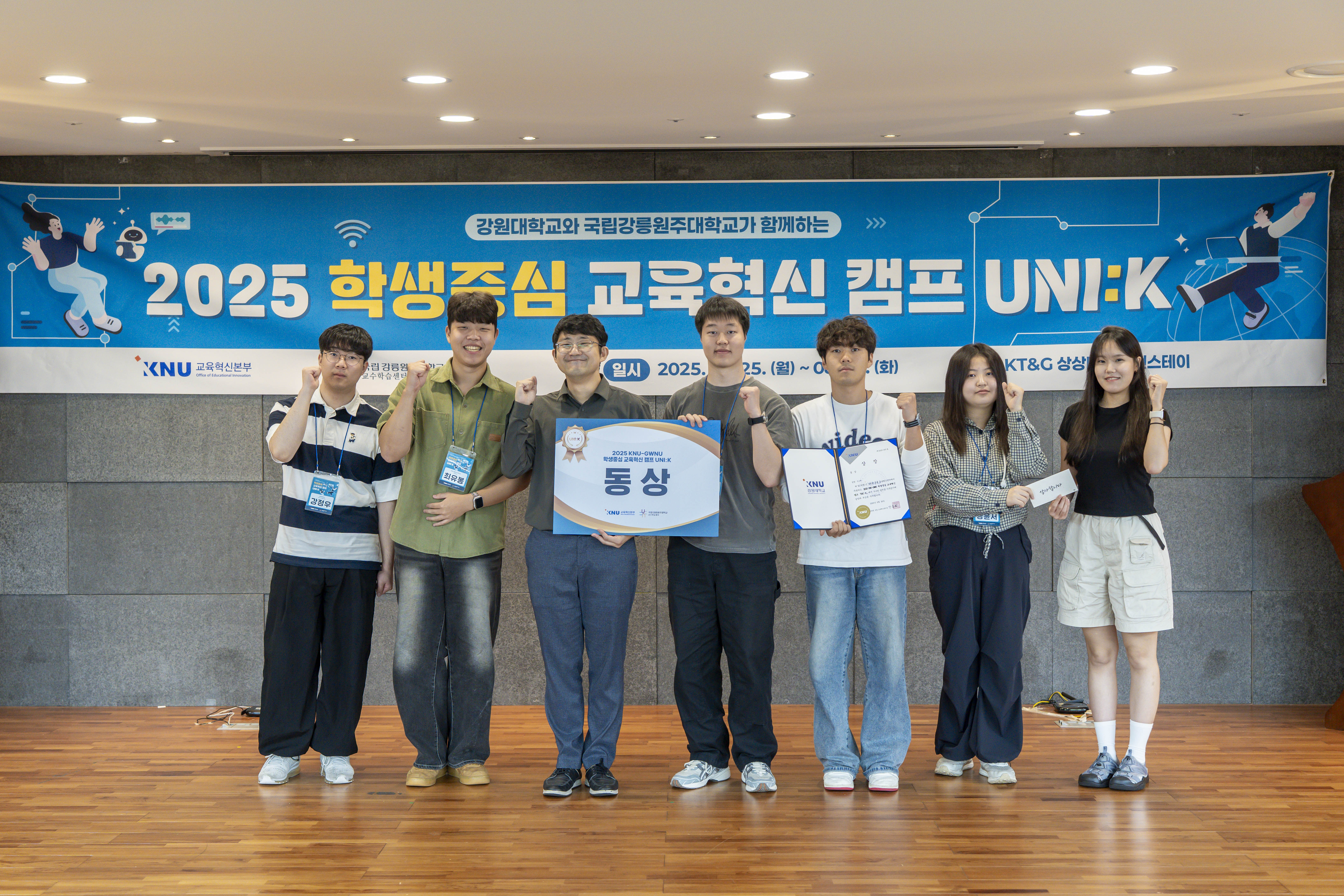 우리 대학과 강원대학교는 8월 25일(월)부터 26일(화)까지 ‘2025 KNU-GWNU 학생중심 교육혁신 캠프「UNI:K」’를 공동 개최했다.