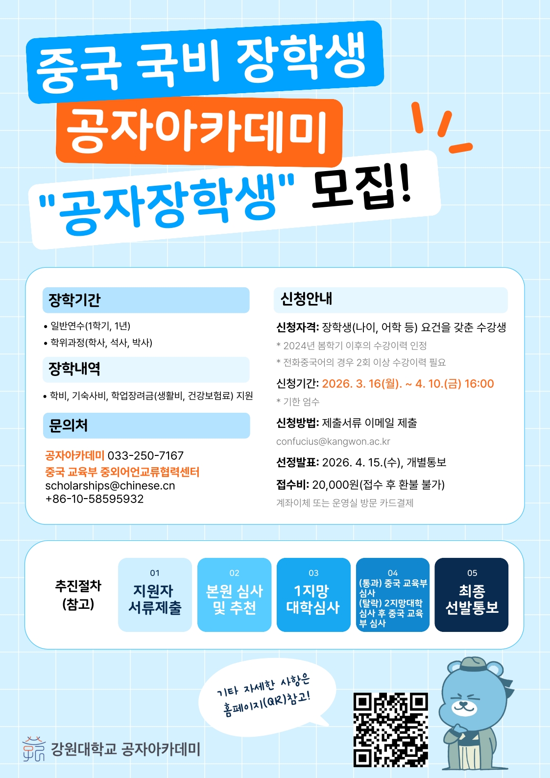 2026 중국 국비 장학생 공자아카데미 '공자장학생' 모집안내