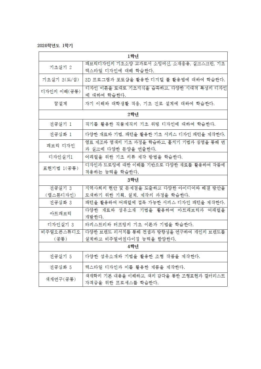 2026학년도 1학기 전공 과목명 및 과목 세부사항 안내