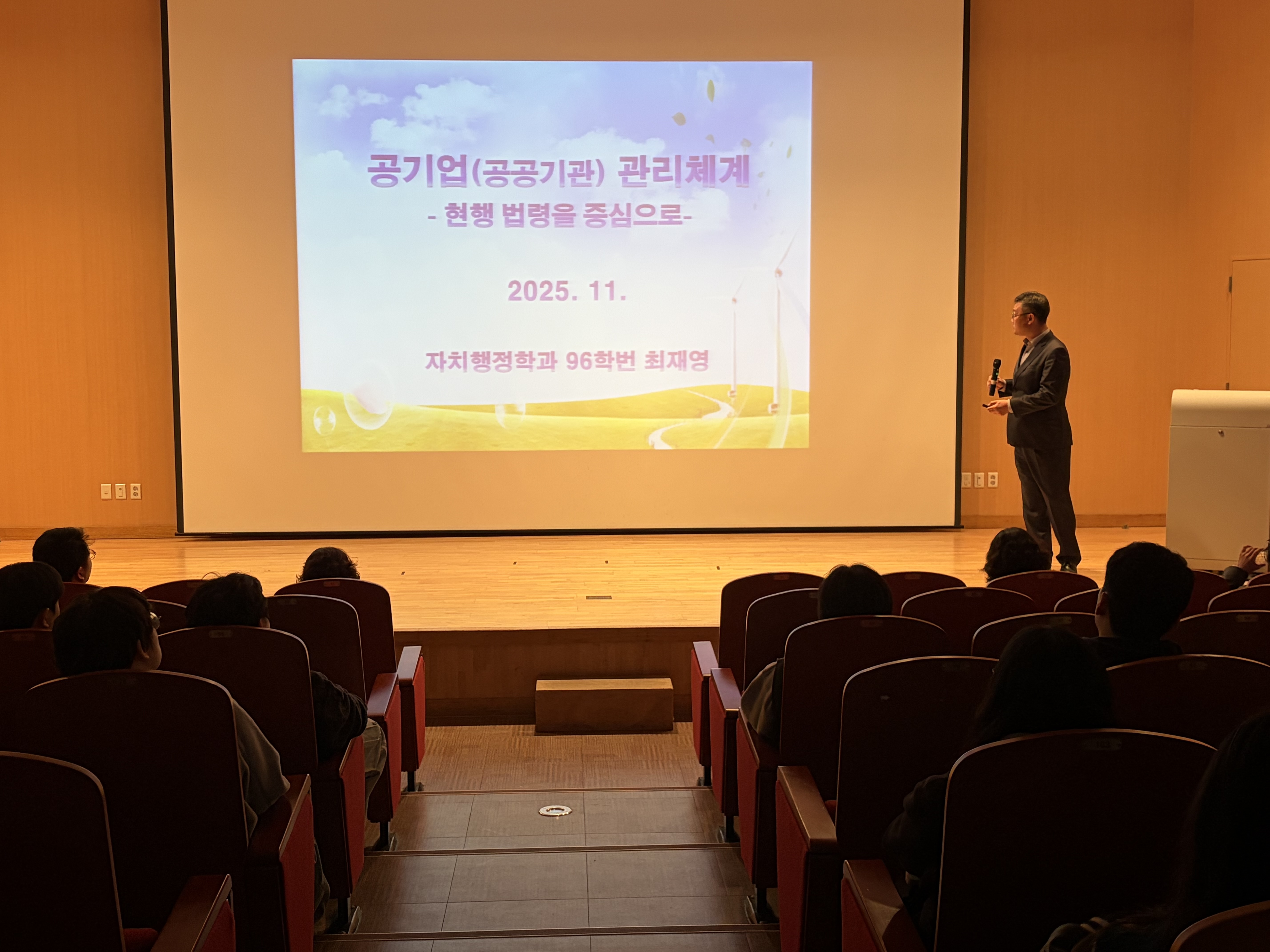 우리학과 96학번 졸업생이신 한국환경공단 최재영 차장님께서 자치행정학과 학부생을 대상으로