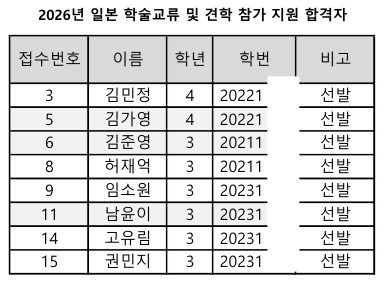 2026년 일본 학술교류 및 견학 참가 지원 합격자 발표