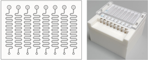 - 랩온어칩(Lab-on-a-chip)은 손가락 크기의 작은 칩에서 일련의 분석과정을 수행할 수 있는 장치입니다. 생화학연구실에서는 액체를 흘려보내지 않고 자성 입자를 이동시켜 분석하는 정지 액체상(Stationary liquid phase) 랩온어칩을 개발하여 식중독균, 충치균, 질병 마커 단백질, 해양 독소 등을 검사하는데 응용하는 연구를 진행했습니다. 특히 우리 연구실에서는 이 랩온어칩을 이용하여 단 한 개의 식중독균을 검출하는 데 성공했습니다.