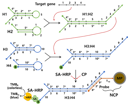 - DNA나 RNA를 이용하여 COVID-19을 비롯한 질병을 진단하는 혁신적인 방법들을 연구하고 있습니다. 여기에는 병원균이나 질병 마커 단백질 등에 결합하는 DNA aptamer, 작은 DNA 분자들을 원하는 구조로 조립하는 DNA engineering, 효소 활성을 갖는 DNA 분자인 DNAzyme, 유전자 편집에 사용되는 CRISPR-Cas, 등온에서 핵산을 증폭하는 등온증폭 방법 등 다양한 기술들이 사용됩니다.