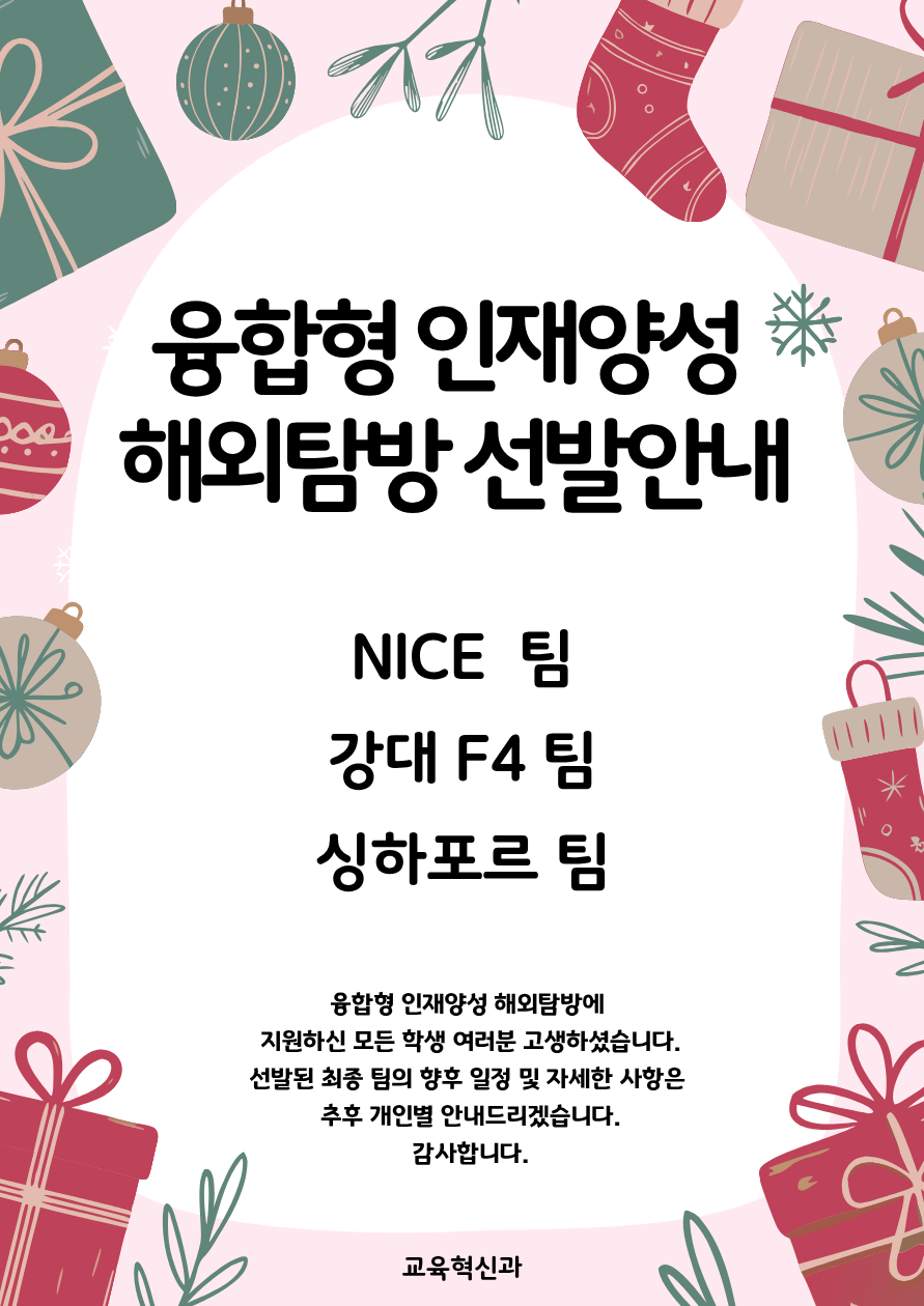 fnctId=bbs,fnctNo=1191 2025학년도 융합형 인재양성 해외탐방 최종선발 안내 작성일 2025.12.05 작성자 김경린 조회수 740 첨부파일 첨부파일이(가) 없습니다.
