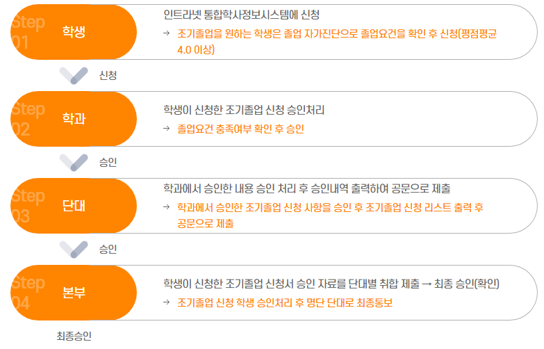 •조기졸업 신청 후 자격 상실자는 일반학생과 같이 8학기 이수 •편입학생은 조기졸업 신청 불가 |